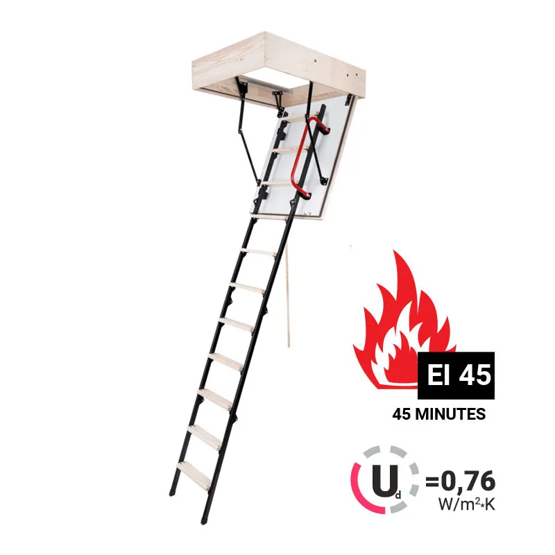 Складная чердачная лестница LWL имеет повышенные теплоизоляционные параметры и высокий класс герметичности. Утеплённая крышка люка белого цвета. Лестница оборудована специальным механизмом LXM-3 и крючком на нижней ступени марша для стержня, которые в комплексе обеспечивают лёгкость и плавность открывания и закрывания лестницы. Снабжена дополнительным поручнем для безопасного подъёма.