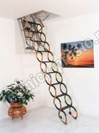 Крышка лестницы представляет собой многослойную конструкцию - деревянная рама, внутри которой находится пенопласт. Внутренняя часть крышки покрыта оцинкованной жестью, наружная часть белой эмалью и защитной пленкой. Толщина крышки 60 мм. Все соединяющие части изготовлены из твердого материала и имеют оцинкованное покрытие. Короб металлический высотой 140 мм., по периметру проходит уплотнитель. Ступени лестницы изготовлены из анодированной стали и покрыты порошковой краской, поверхность имеет антискользящие насечки и выдерживают нагрузку 150 кг.