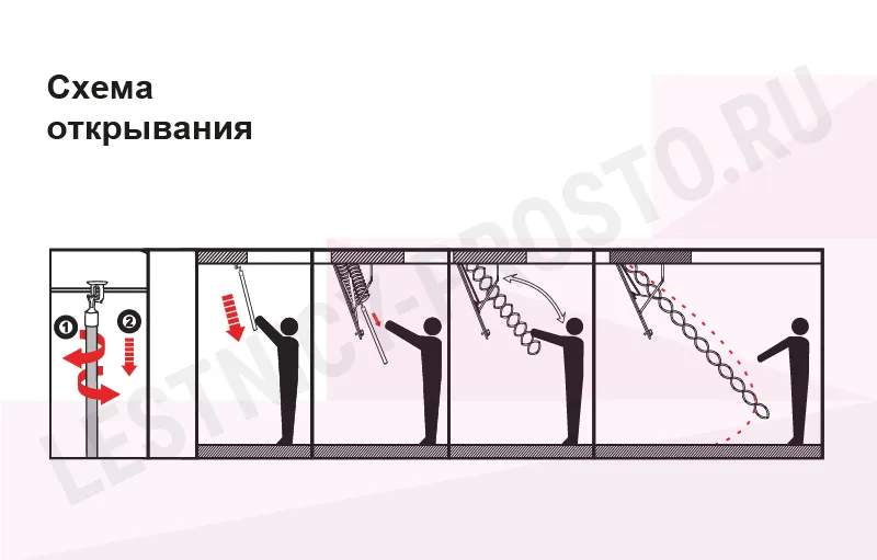 Крышка лестницы представляет собой многослойную конструкцию - деревянная рама, внутри которой находится пенопласт. Внутренняя часть крышки покрыта оцинкованной жестью, наружная часть белой эмалью и защитной пленкой. Толщина крышки 60 мм. Все соединяющие части изготовлены из твердого материала и имеют оцинкованное покрытие. Короб металлический высотой 140 мм., по периметру проходит уплотнитель. Ступени лестницы изготовлены из анодированной стали и покрыты порошковой краской, поверхность имеет антискользящие насечки и выдерживают нагрузку 150 кг.