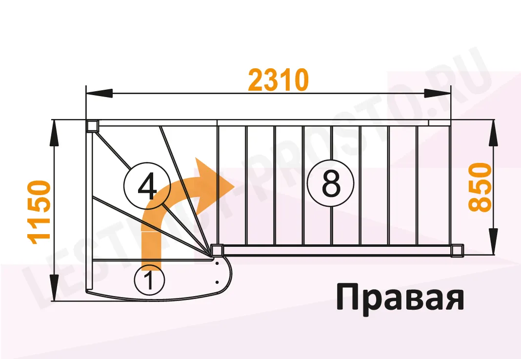Схема лестницы ЛС-07М/3 с поворотом направо