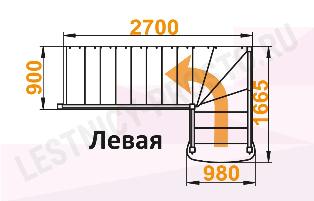 Схема лестницы К-021М с поворотом налево