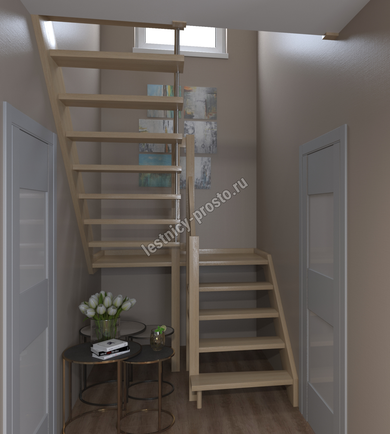 Лестница Prosto Console п-образная забежная, дуб h300 см