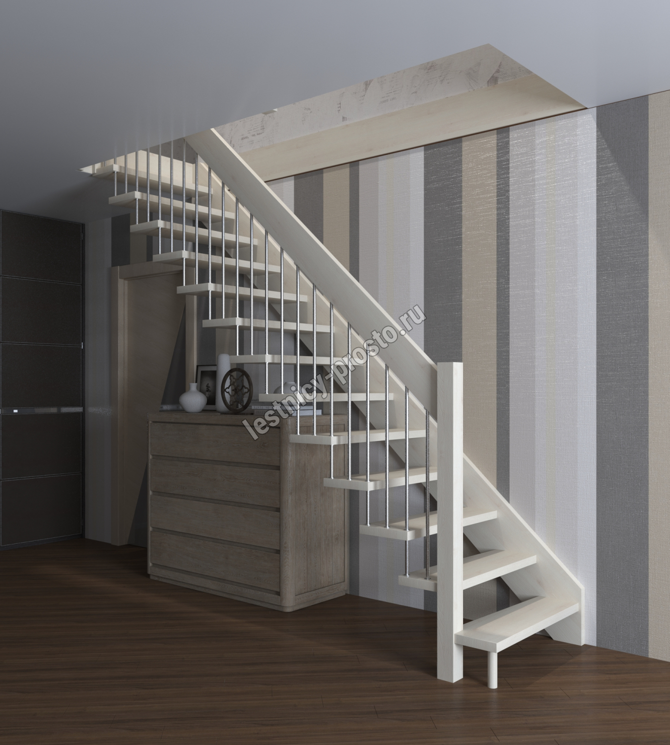 возможна комбинированная лестница: из сосны (ступени бук, ясень, дуб);