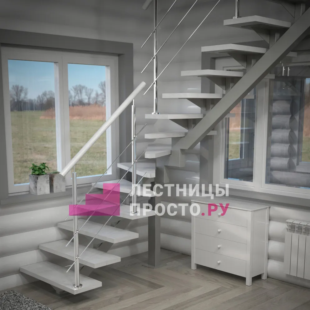 Элементы лестницы в базовой комплектации не имеют какого-либо покрытия. В нашем интернет-магазине, вы можете заказать предварительную профессиональную покраску (лакировку) лестницы в необходимый цвет или сочетание цветов. По запросу можно изменить базовое ограждение на любое из нашего каталога. Под заказ модель можно дополнить подступёнками, поворотные ступени заменить на площадку, добавить промежуточный марш, пригласительную ступень и т.п. Кроме того, мы легко и относительно быстро изготовим подобную лестницу под необходимые вам параметры помещения (можно изменить размер проступи, высоту шага, ширину марша на любую необходимую). Звоните нам, мы ответим на все ваши вопросы и поможем правильно подобрать габариты лестницы.