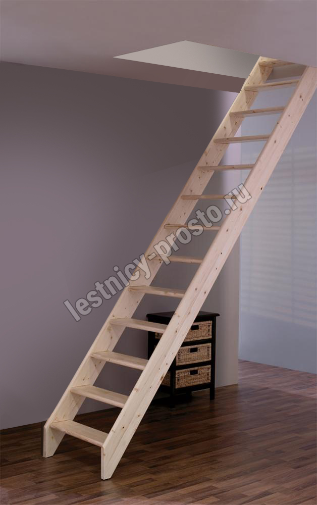 Базовый комплект включает в себя деревянные элементы лестницы без какого-либо покрытия.