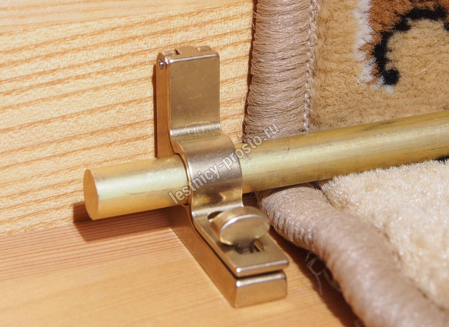 Ковродержатель комплектуется двумя держателями из латуни цвета золото, а также цельным прутком из латуни длиной от 101 до 130 см. Конструкция является сборно-разборной не требующей демонтажа креплений, что делает ее долговечной и очень удобной для чистки ковров и ковровых покрытий.