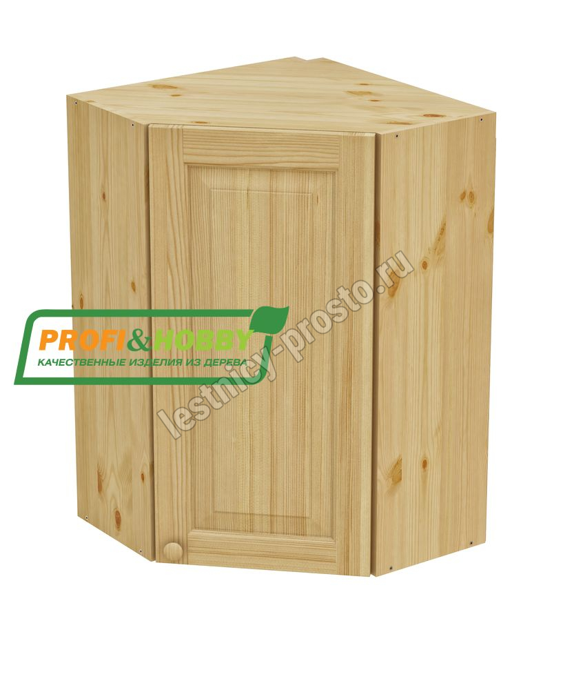 Шкаф навесной угловой 600 х 600 х 300 х 900 филенка, сосна, бесцветный акриловый лак