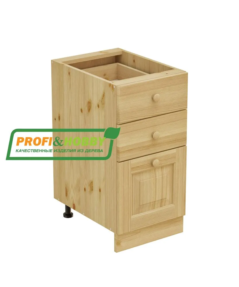 Тумба 3 ящика 400 х 560 х 720 сосна, бесцветный акриловый лак
