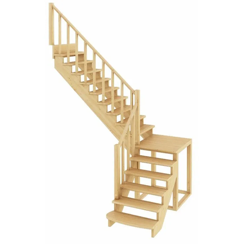 Универсальная лестница на металлическом каркасе с поворотной площадкой. Идеально дополнит любой интерьер, имеет современный вид и удобна в использовании. Монтаж осуществляется силами двух человек на объекте по указаниям, приведенным в паспорте на лестницу.