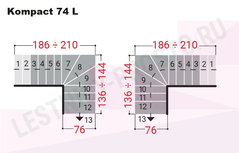 Вариант сборки лестницы Kompact 74