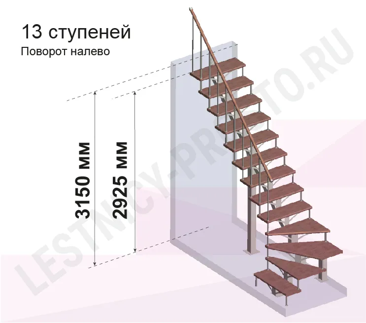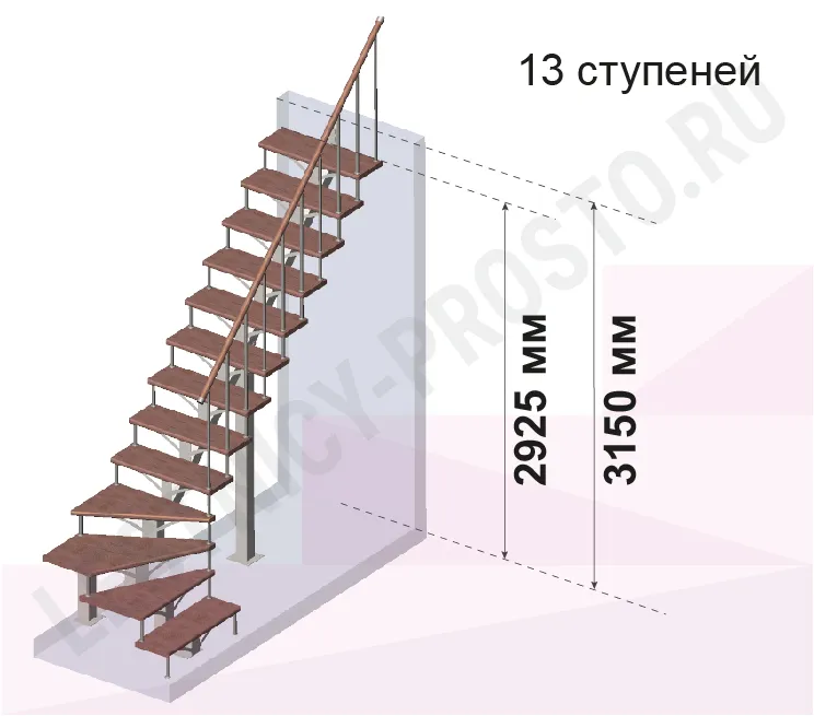 Высота лестницы 2925 - 3150 мм