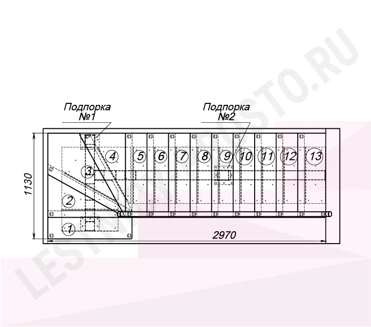 Габариты в плане 1130 × 2970 мм
