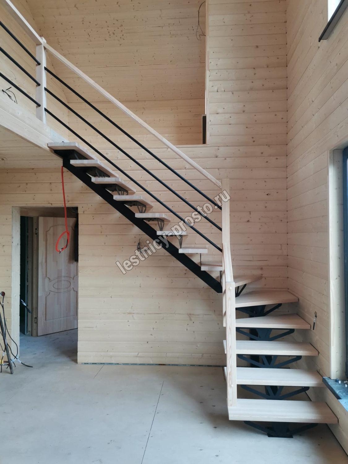 Лестница PROSTO MONO STEP TRINITY г-образная забежная, ступени лиственница с ограждением