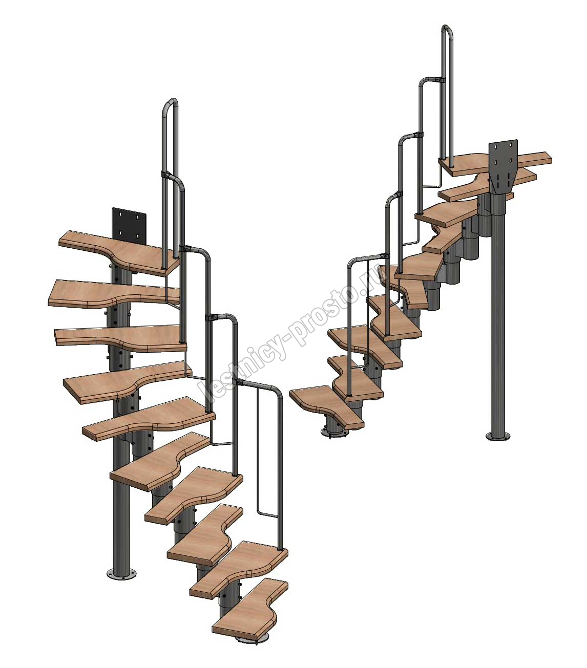 Лестница Prosto Urban Black гусиный шаг 700 мм, h180-264 см (10 ступеней) берёза мультиплекс
