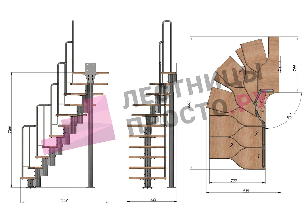 - Регулируемый по высоте в пределах 180-240 мм модуль. Большой диаметр и толщина металла деталей обеспечивают жесткость и прочность конструкции. Регулировка каждого модуля по высоте позволяет легко приспособить лестницу под ваше помещение.