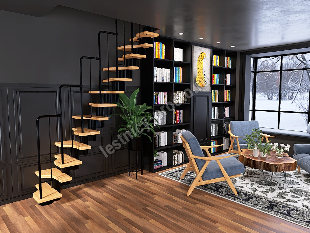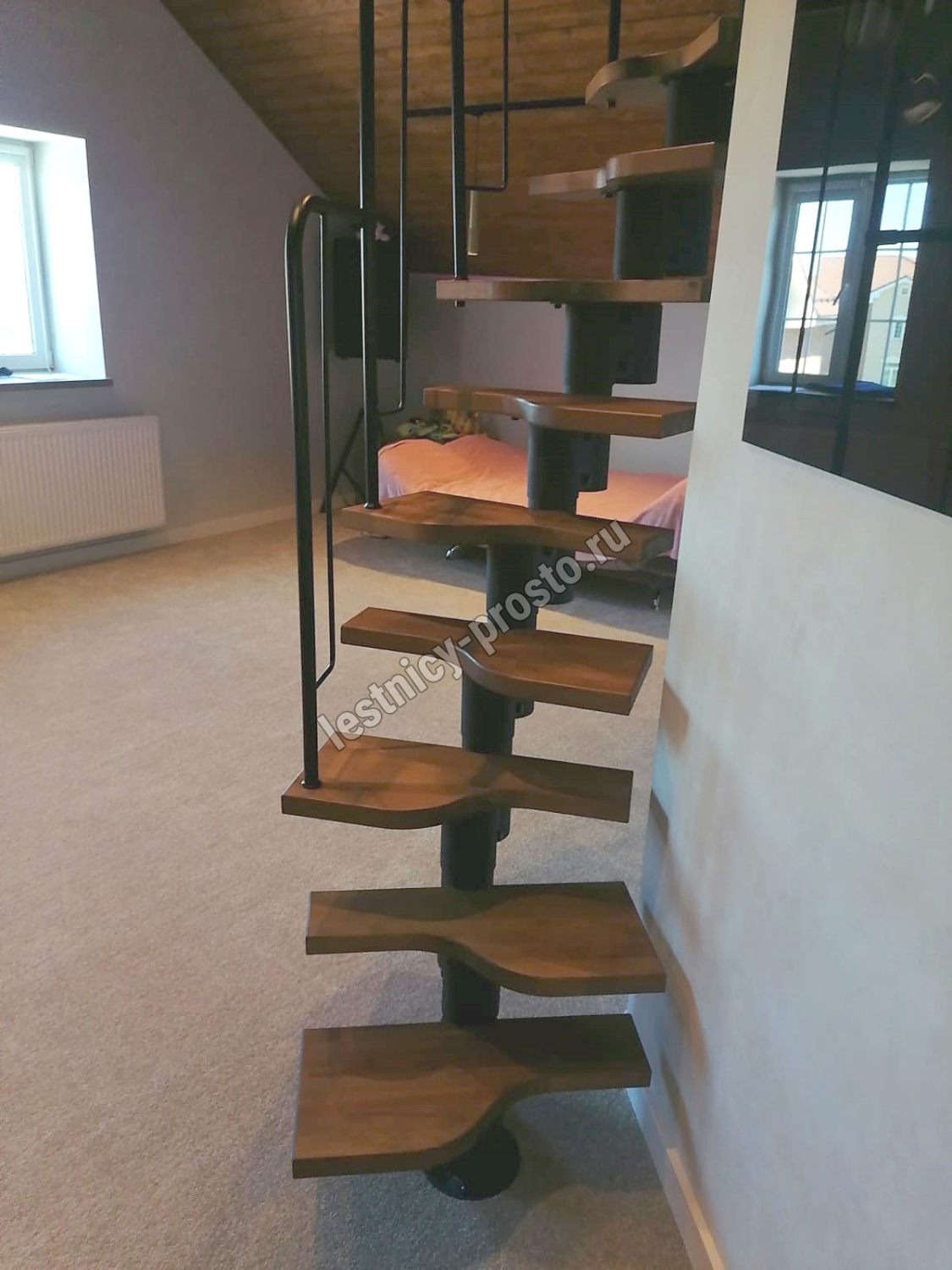 Лестница Prosto Urban Black гусиный шаг 700 мм, h198-288 см (11 ступеней), берёза мультиплекс