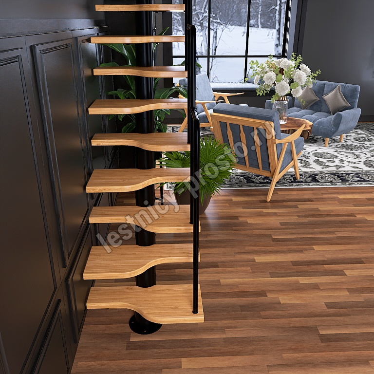 Лестница Prosto Urban Black гусиный шаг 700 мм, h216-312 см (12 ступеней), берёза мультиплекс