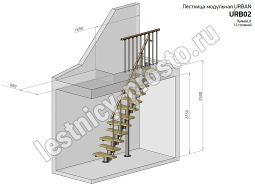 Высота лестницы 2160 - 3120 (12 ступеней) мм