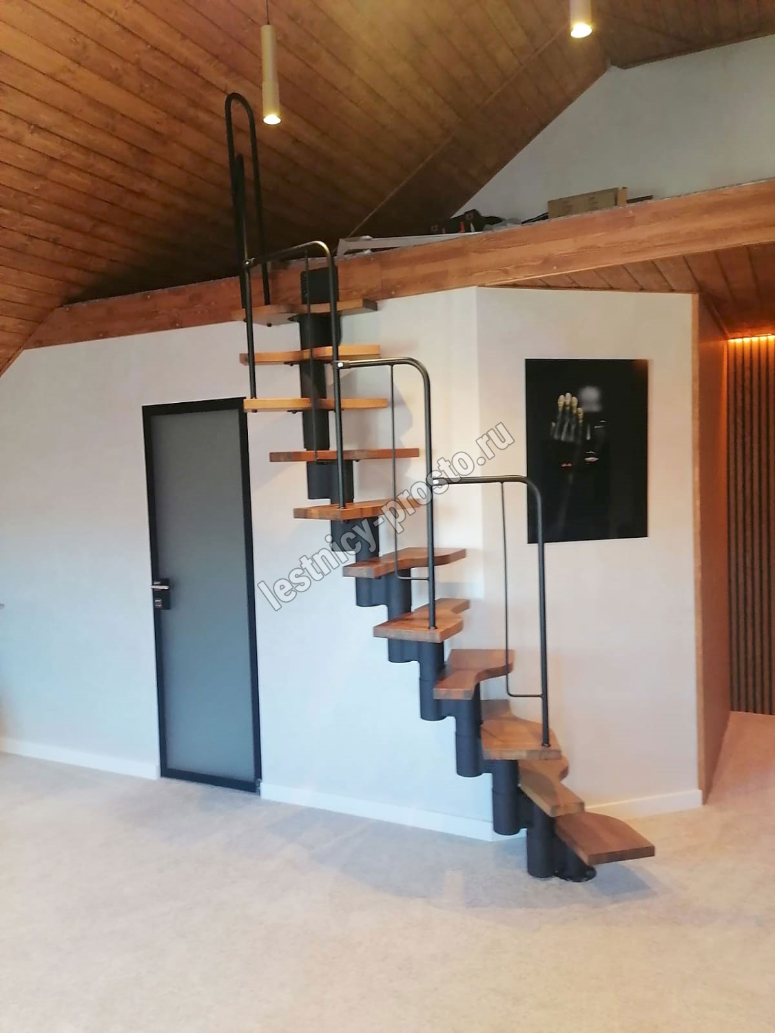 Лестница Prosto Urban Black гусиный шаг 600 мм, h198-288 см (11 ступеней), дуб
