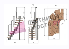 Высота лестницы 1800 - 2640 (10 ступеней) мм