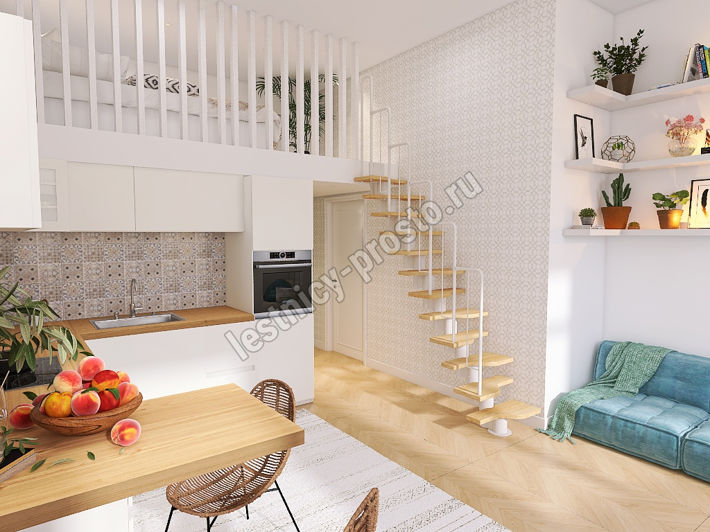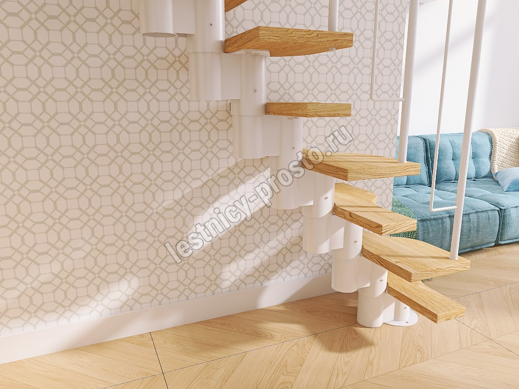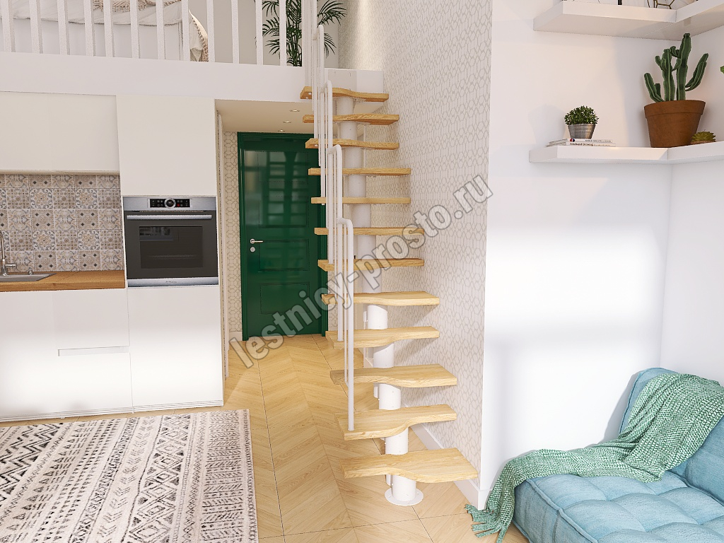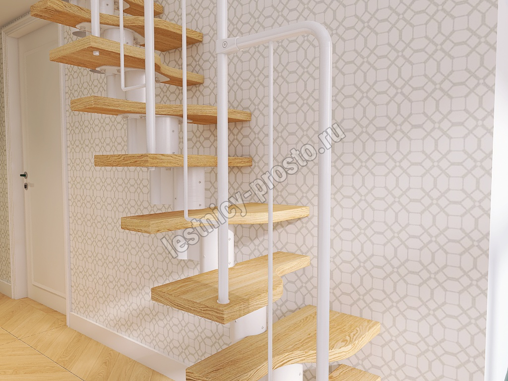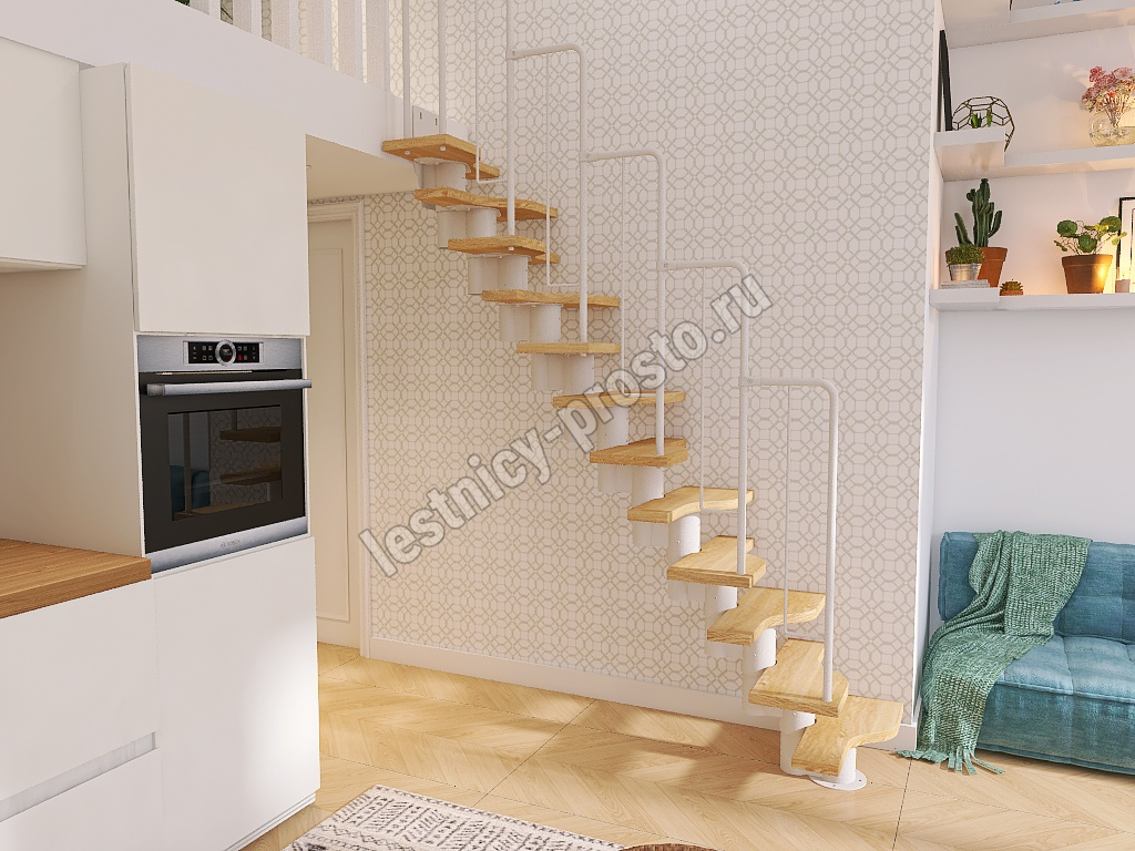 Лестница Prosto Urban White гусиный шаг 700 мм, h216-312 см (12 ступеней), берёза мультиплекс