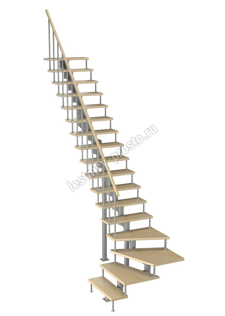Модульная лестница Фаворит 180 3060-3230, Серый, Сосна, Нержавеющая сталь