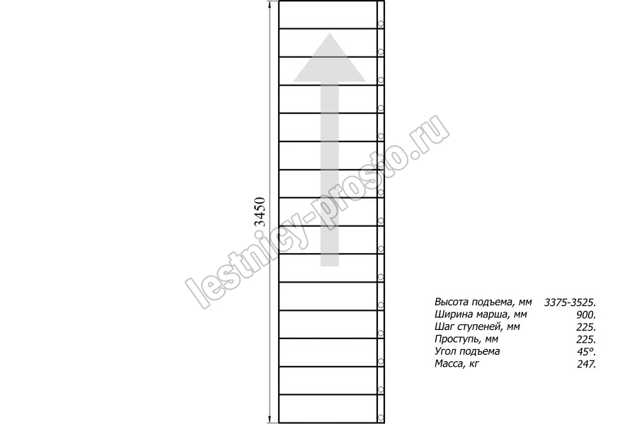 Модульная лестница Стандарт 3375-3525, Черный, Сосна, Крашеная, Без Ступений