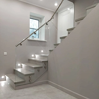 Лестница из стекла/дуба/керамогранита с подстветкой LP-1-53