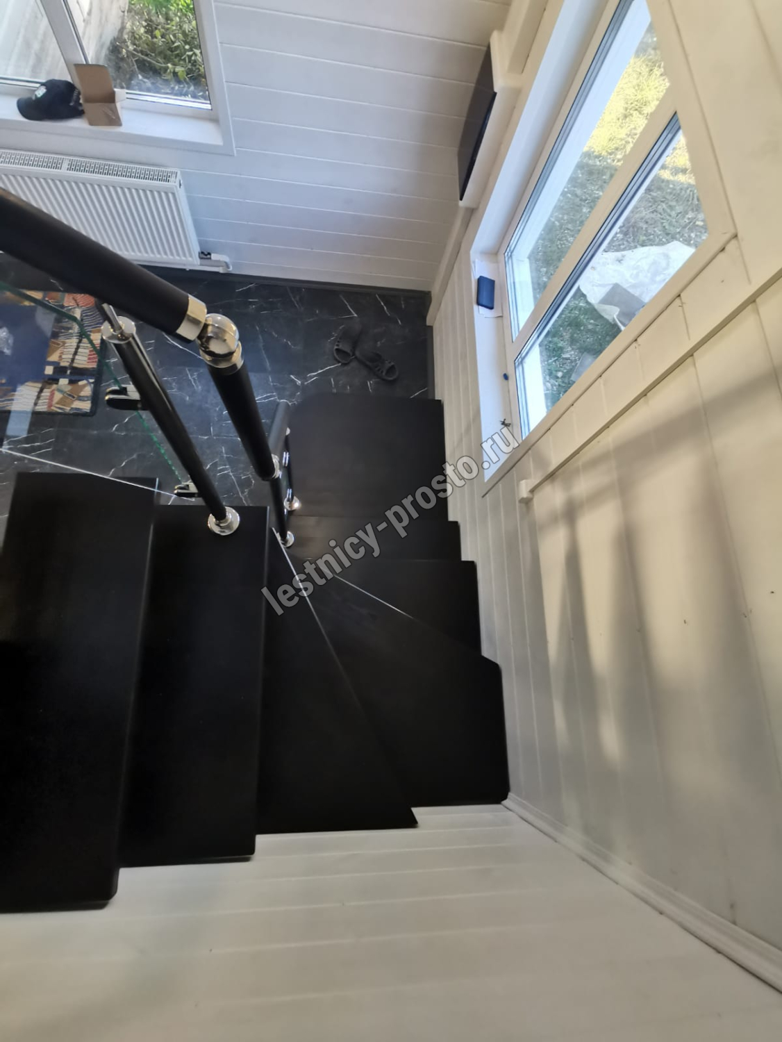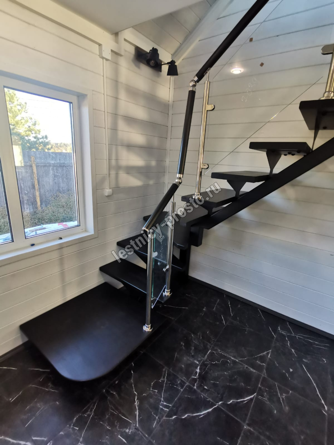Стеклянная лестница на металлическом каркасе LP-3103
