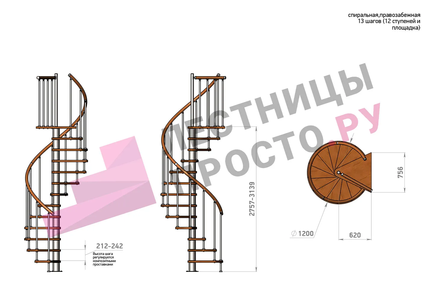 | Винтовая лестница Prosto Spiral Black D140см, h275.7-313.9 см |