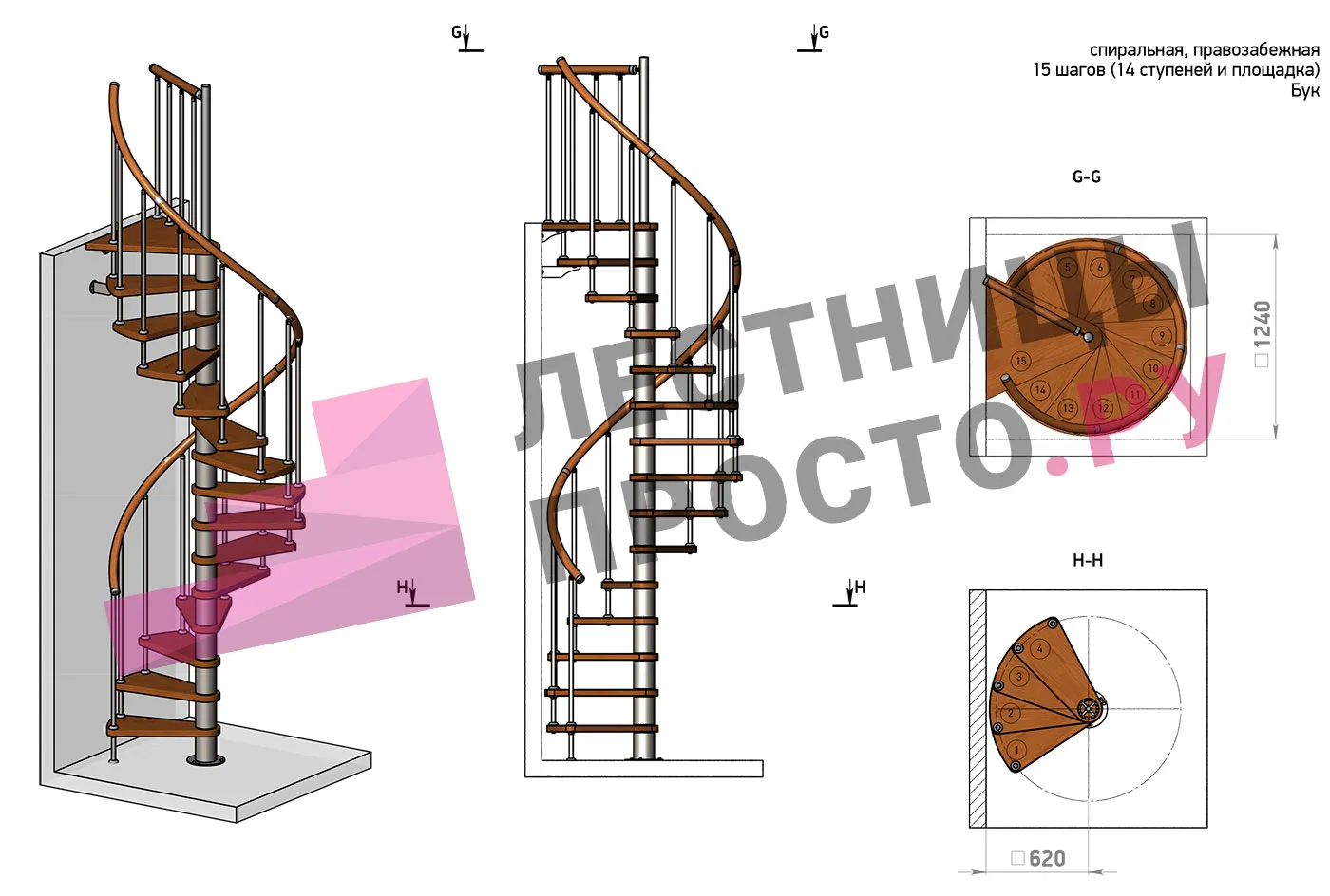 Винтовая лестница Prosto Spiral White D120см, h325.7-369.8 см, бук