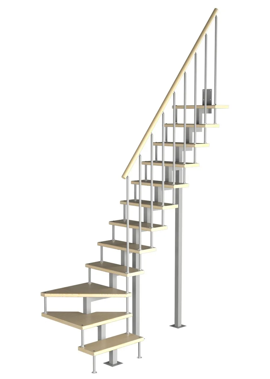 Лестница представлена в двух вариантах: с поворотом направо и с поворотом налево. Благодаря возможности регулировать высоту шага с помощью пластиковых вставок (входят в базовый комплект), высоту лестницы можно варьировать в пределах от 2860 до 3090 мм. Кроме того, купив дополнительную секцию для этой лестницы, можно поднять высоту до 3320 мм.